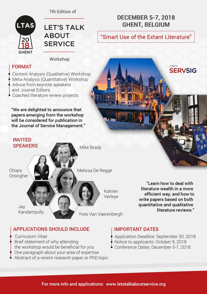 Keynote Speakers:    Mike Brady, Melissa De Regge, Jay Kandampully, Chiara Orsingher, Katrien Verleye & Yves Van Vaerenbergh