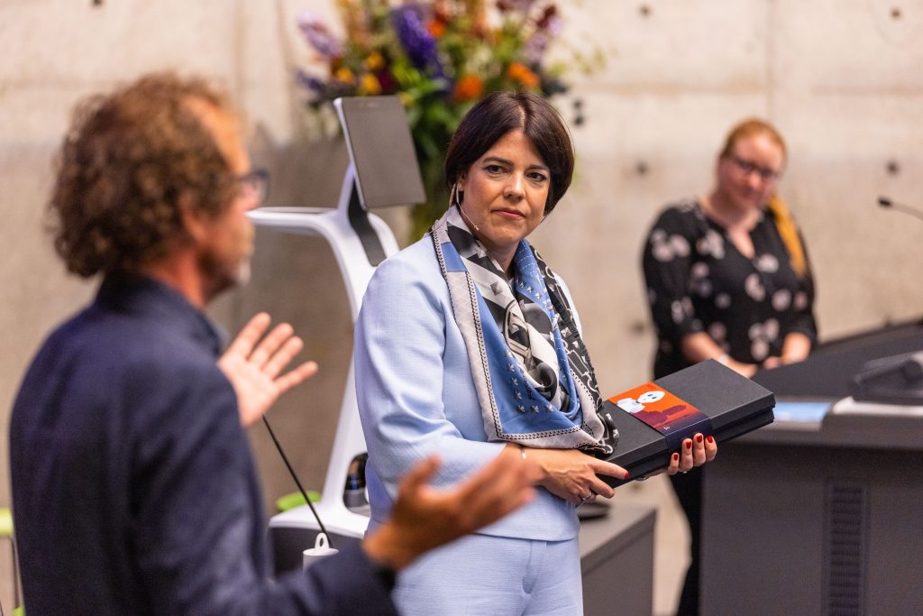 The first keynote session focused on Ethics and AI. Margaret Mitchel, a world renown expert in AI ethics, addressed the need for responsible AI practices to prevent bias and discrimination. The Dutch child care benefit scandal exemplified the significance of ethical considerations in AI, as explained by Olaf Simonse, manager ‘emotional recovery’ of the Dutch child benefit case, in an interview with the moderator of the session, Lisa Brüggen.