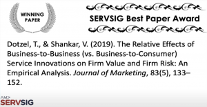 The “SERVSIG Best Service Article Award” is presented annually by SERVSIG to the author(s) of the best article in the service literature published during the previous calendar year. SERVSIG thanks the...